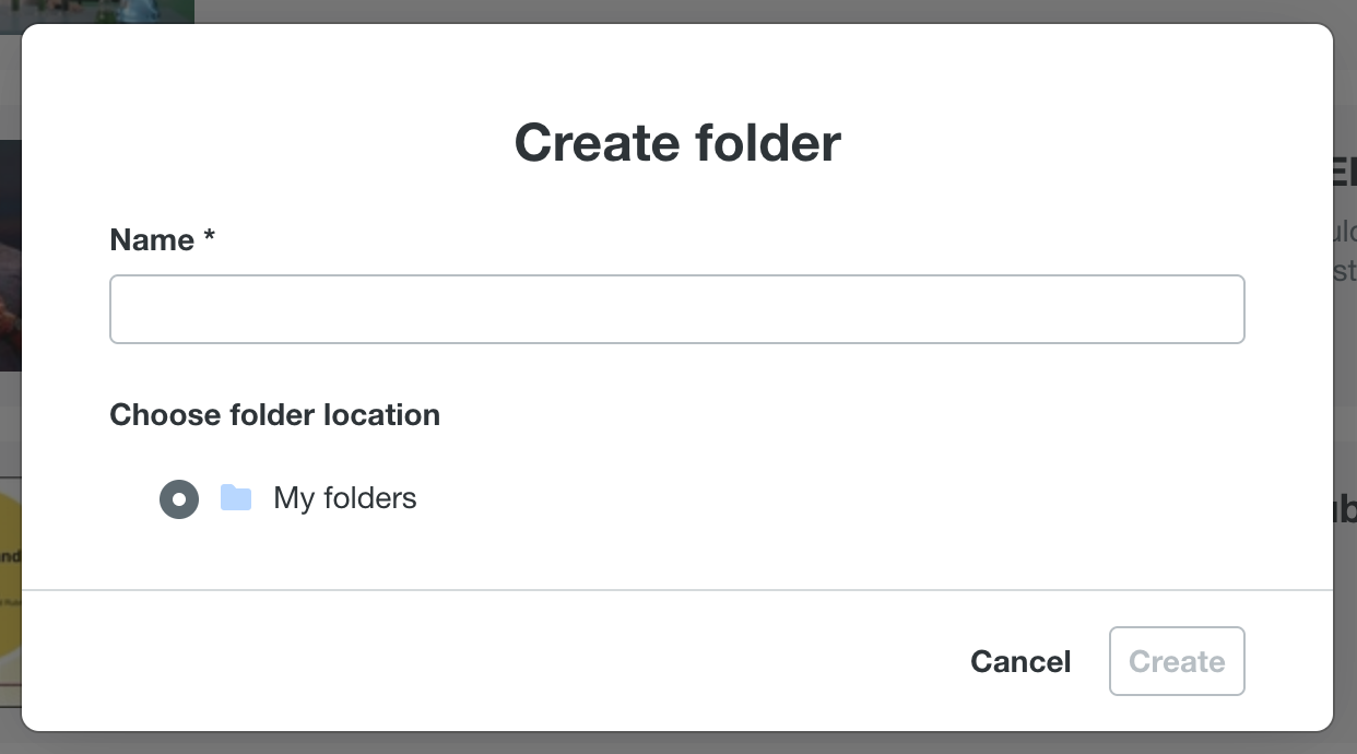 - If this is your first folder, the only available location is My Folders (your top-level folder).