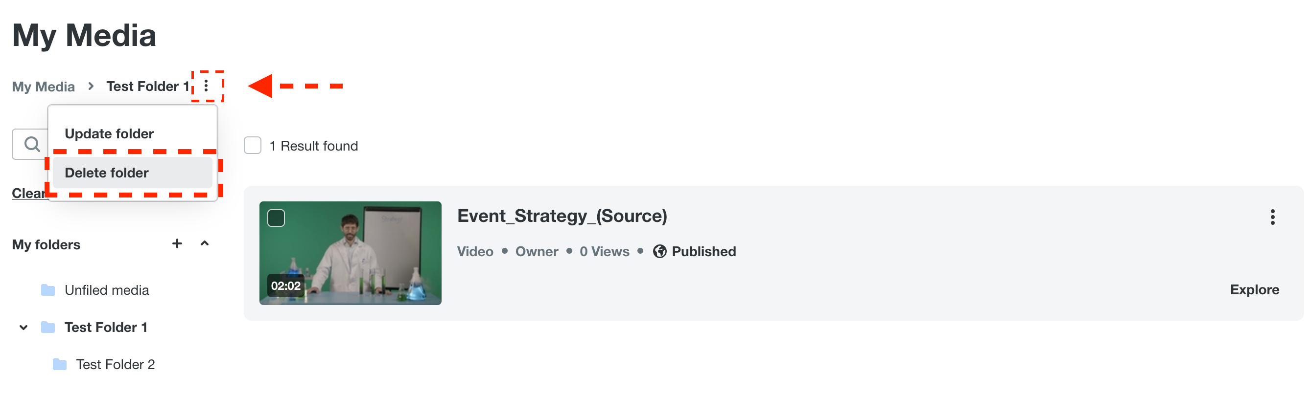 Deleting a folder also deletes any subfolders inside it, but your media remain safe – it’s moved back to Unfiled media or to the parent folder, if applicable.
